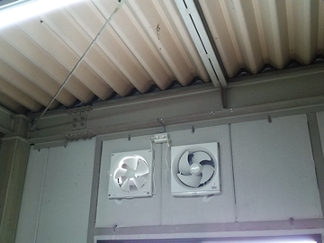 - ガレージ内換気扇および屋根散水式クーリングシステム